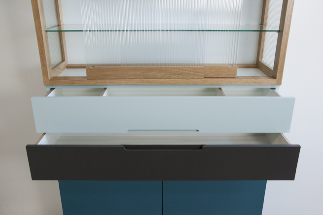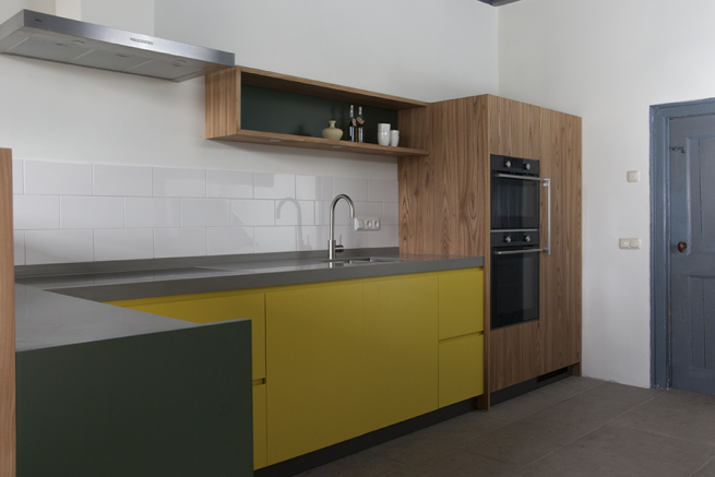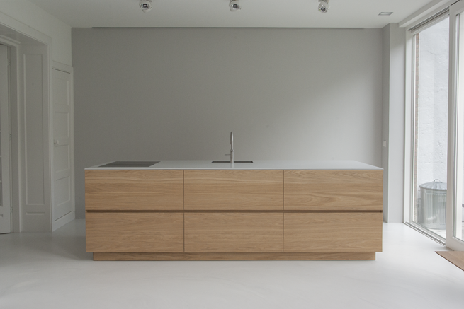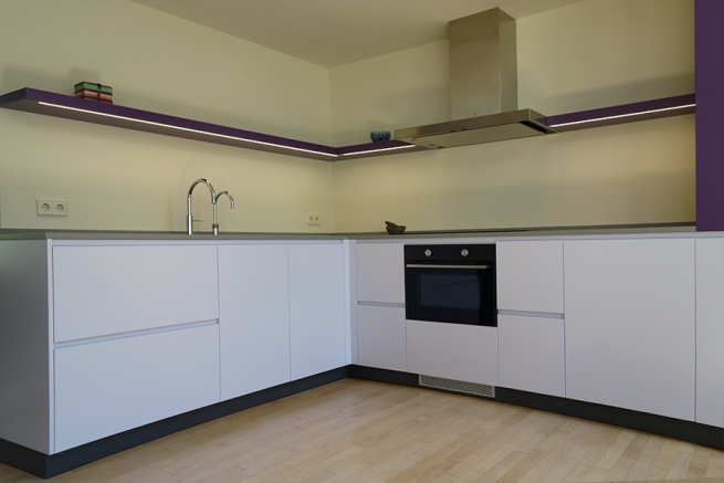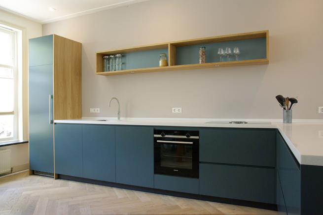 Zwevende maatwerk keuken met koffiehoek en hangende kast